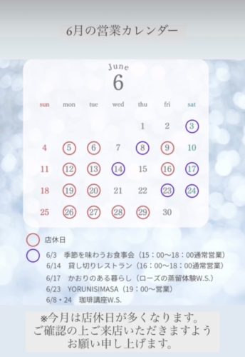 また、2023年6月は店休日が多くなっておりますので、必ずご確認の上ご来店くださいませ。