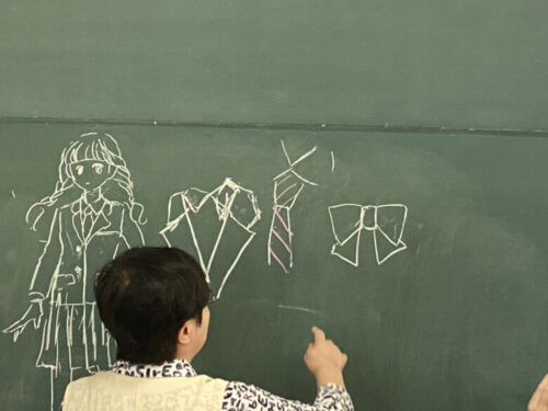 皆があーでもない、こーでもないと頭を抱えている間に先生は初見の制服をサクッと描きあげるこの力量。