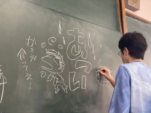 授業が終わったら先生は即、黒板を消そうとしていたのですが生徒が必死に「消さないでええ!!!」って止めてました。そりゃそうですよね。小さいころから見てたマンガの作者さんの直筆ですもん。消せません。