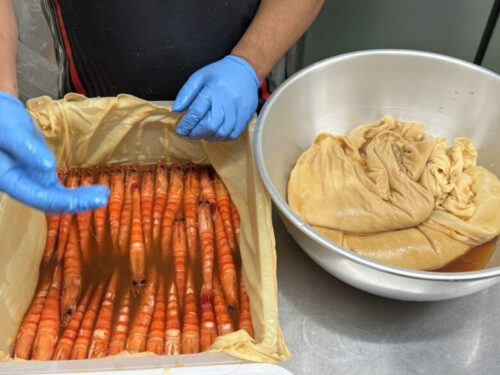 できたての味噌漬けをいただきましたが、プリプリなのは言うまでもなく、味噌の香りが口の中にフワァと広がったかと思うと、アシアカエビの濃厚な味(旨味)が染み込んだ味噌がドカンっと味の上書きをしてくれます。そして噛めば噛むほどエビエキスを染み込んだ味噌が、怒涛のように味覚に押し寄せます。