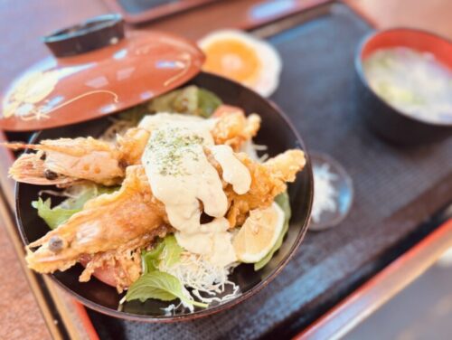 どのお店も、自慢のメニューはアシアカエビです。獲れる量が少ないので、お電話で問い合わせて食べに行くことをススメます。