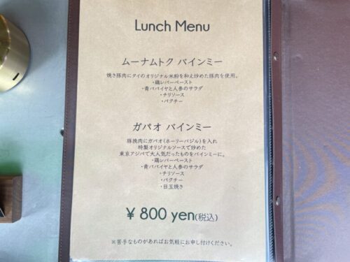 まずは、ムーナムトクバインミー(早口で言えないメニュー名です)