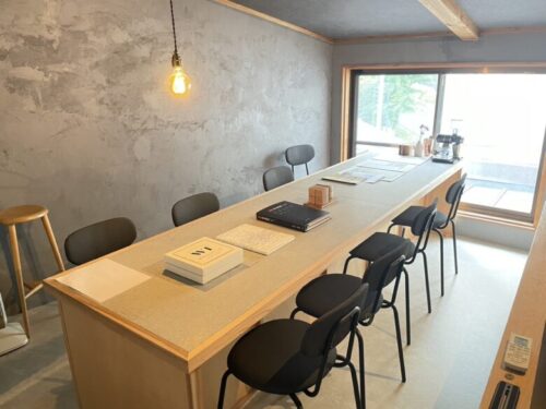 8人まで利用できるテーブルがあります。(普段はシェアオフィスとして機能)