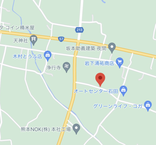 「阿蘇市一の宮町坂梨2368」あたり、もしくは地図内に見えている「浄行寺」を目指すと分かりやすいかもしれません。