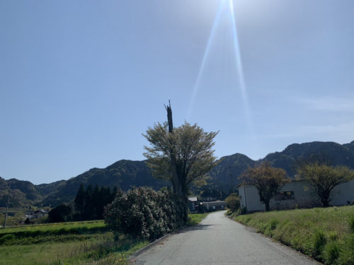 山田氏が真冬の雪の日に原付で見に行き、みんなをザワつかせた「古閑の滝」へ向かう途中あたりです。