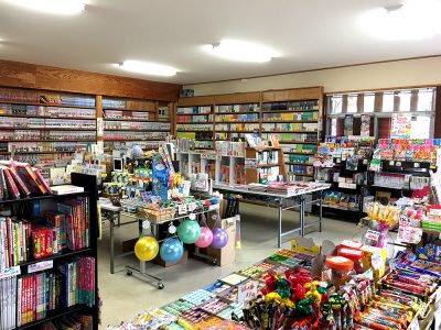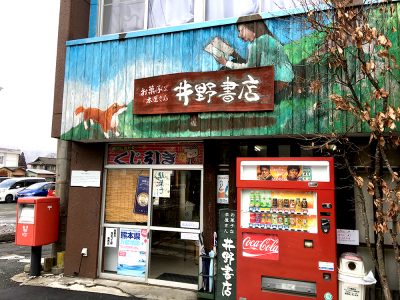 以前は普通に本だけを扱う書店(なんと創業から52年!)だったそうですが、数年前の「阿蘇の大水害」によりこの内牧一帯はほぼ水没!お店も水による大きな被害を受けられたそうで、再建された際にアートなイラスト看板と、店内でお菓子販売とイートインの営業を追加で始められたそうです。