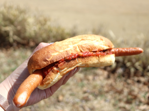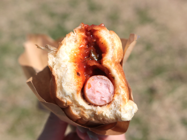 こちらは、ソーセージの中でもチリソースが掛けられているチリドック。ソースたっぷりで、気を付けないとこぼれてしまいます。