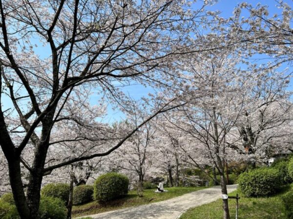公園までは桜並木を上がっていきます。桜を眺めながらぽかぽか暖かい散歩道を歩くのは気持ち良いでしょうね。