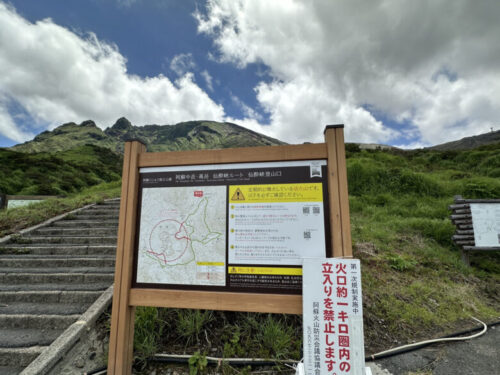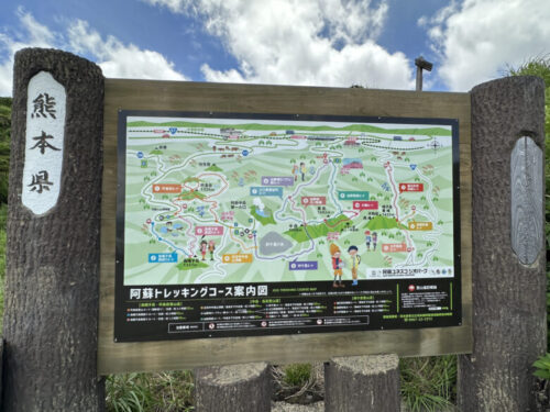 阿蘇五岳を登るコースの案内版があります。