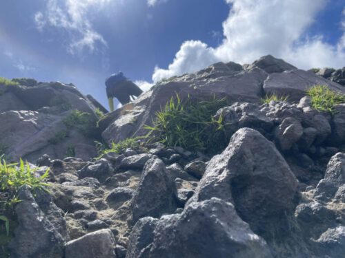 ひたすら登ります。岩場が多いので登山靴などのしっかりした靴で登ってくださいね。