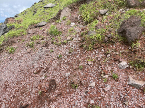 山頂に近づくにつれて、土の色も変わってきます。
