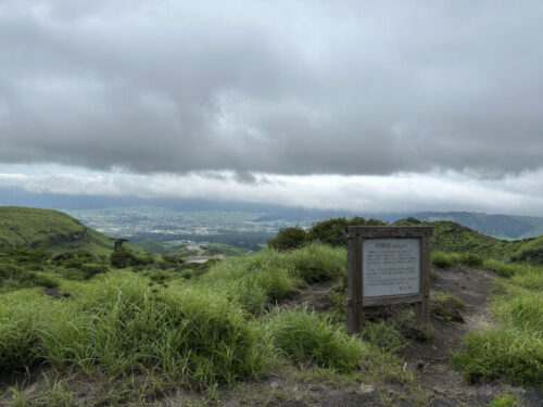 山頂は雲がありましたが、天気の良い日は内牧方面と高森方面が見えます。