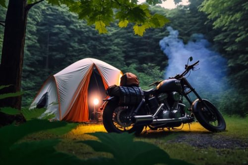 バイクで来てバイクと一緒にキャンプできるスペースを追加。