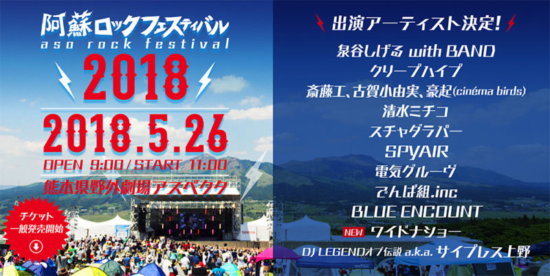 “ワイドナショー”も参戦!?「阿蘇ロックフェスティバル2018」はまだチケットありますよ!【5月26日】