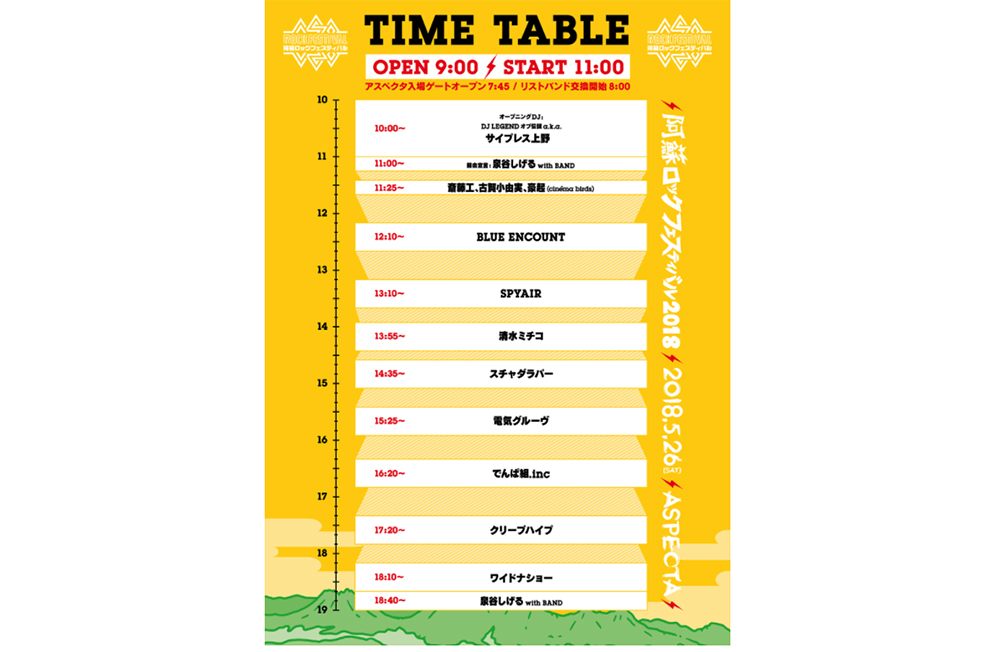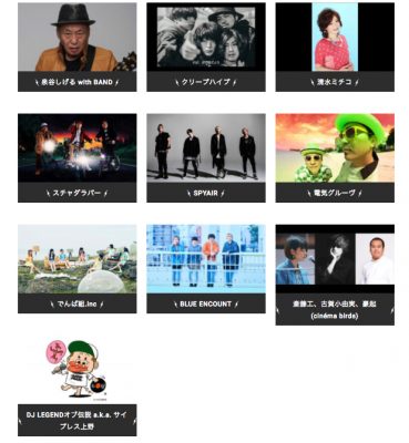 今年の出演アーティストは、総合プロデューサーの「泉谷しげる」さんはもちろんのこと、「スチャダラパー」や「電気グルーヴ」などのベテラングループから、熊本出身バンド「BLUE ENCOUNT」、人気アイドル「でんぱ組.inc」なども参戦。