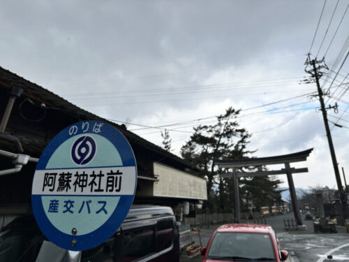 バスで来られる方は、「阿蘇神社前」で降りてくださいね。