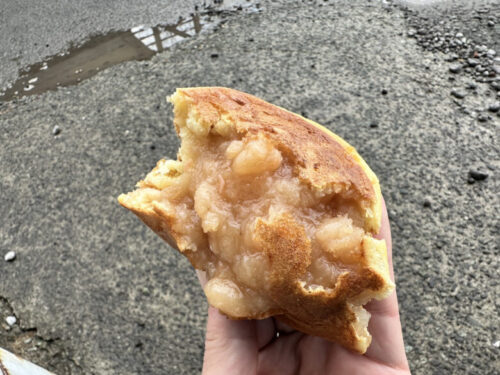 熊本で饅頭といえば、回転饅頭でおなじみ蜂楽的な饅頭の形を想像しますが、ここは半円形の形をしています。