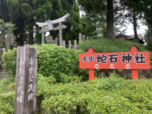 赤石蛇石神社の看板が目印!