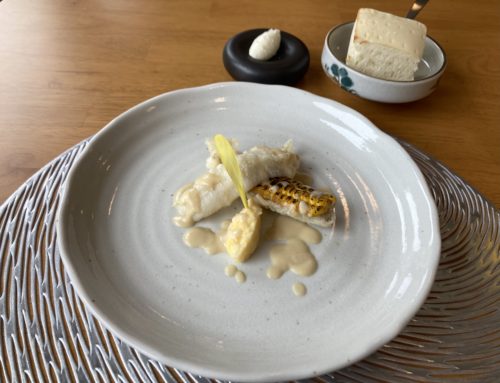魚料理のメインがこちら、焼きとうもろこしとキスのベニエ。とうもろこしとキスってこんなに合うの?!と舌を疑う旨さ。フォカッチャは、生クリームから作られた自家製バターと共に頂くことができます。おかわりOKとのこと!こちらも絶品です!