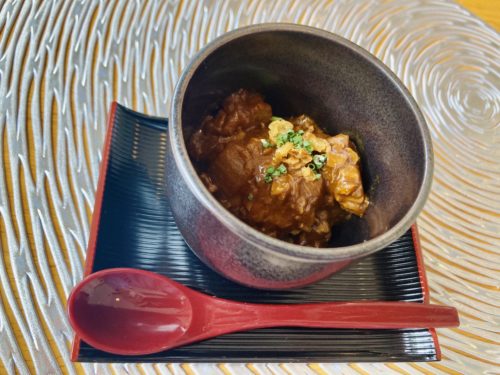 出てきました!〆のミニハヤシライス。サイズはミニでも味は本格的。ぎゅっと旨みが詰まった〆にふさわしい味でした。〆も月替わりで、おにぎりやミニカレー、高菜飯、ミニラーメンの月もあったそう。どの〆もめちゃめちゃ気になります!