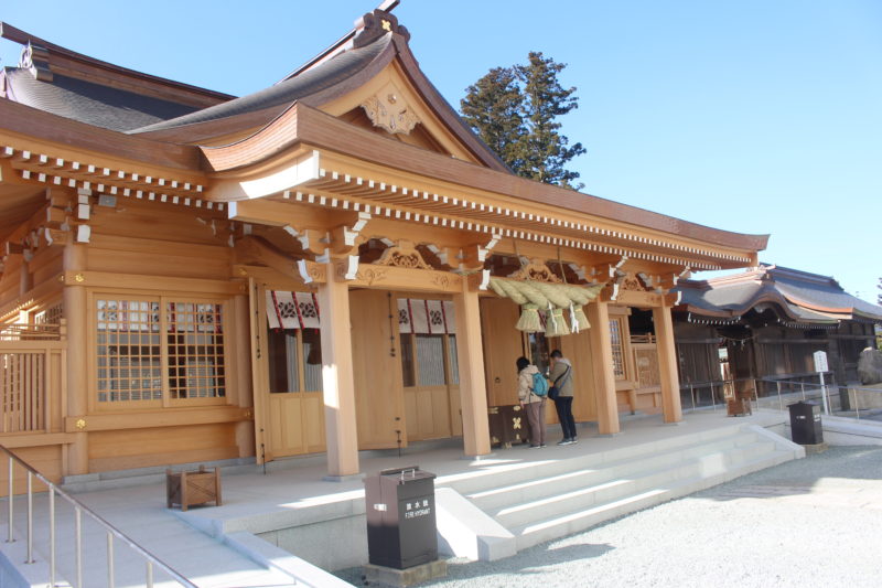 震災から来年で6年、完全復活まであとは楼門を残すのみ。令和5年12月とあと2年近くありますが、立派な姿を思い浮かべると待ち遠しいですね。拝殿も新しくなっていますので、みなさんもぜひ足を運んでみてくださいね。
