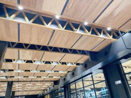 これは東京五輪選手村で使用されていたビレッジプラザの建築材を活用したのだそう。