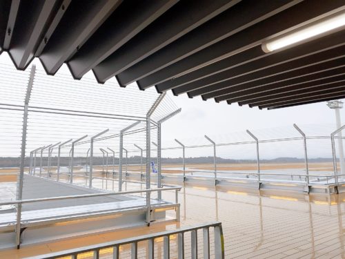 デッキは滑走路側にせり出す、いわゆる「花道型」を採用。最後の最後まで手を振ってお見送りできそうです。