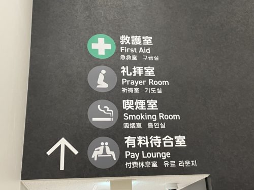 見たことないマークがあるなと思い聞いたところ、なんと礼拝堂なんですって。さすが国際線。