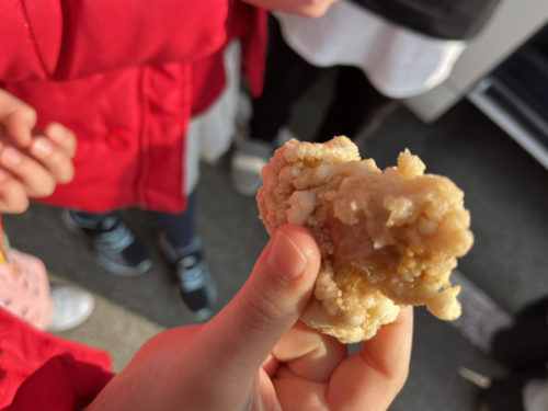 こちらは、先日のドライブ前にテイクアウトしたときの様子です。子どもたちが、からあげの袋を囲って、「おいしいおいしいー!」と笑顔でパクついてました!!!ほんとに子どもたちにも大人気で、大興奮!!!