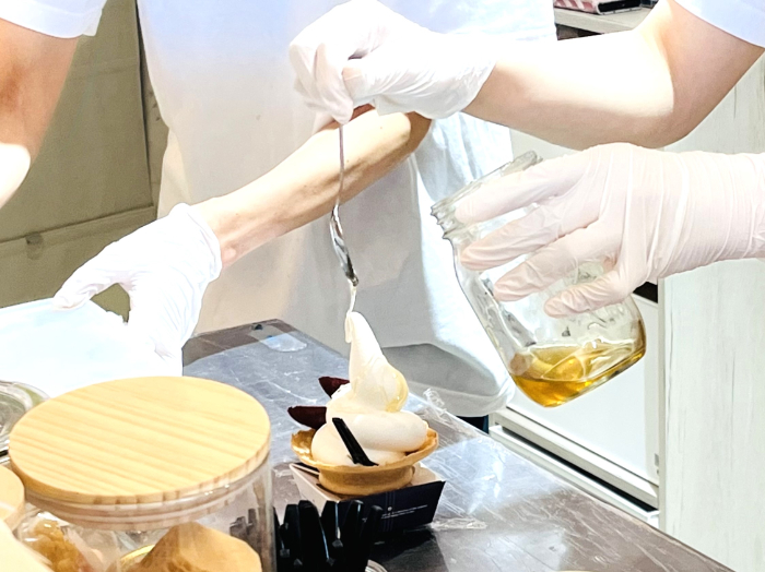 ソフトクリームの上からたっぷりの純粋生はちみつを掛けてくれます。