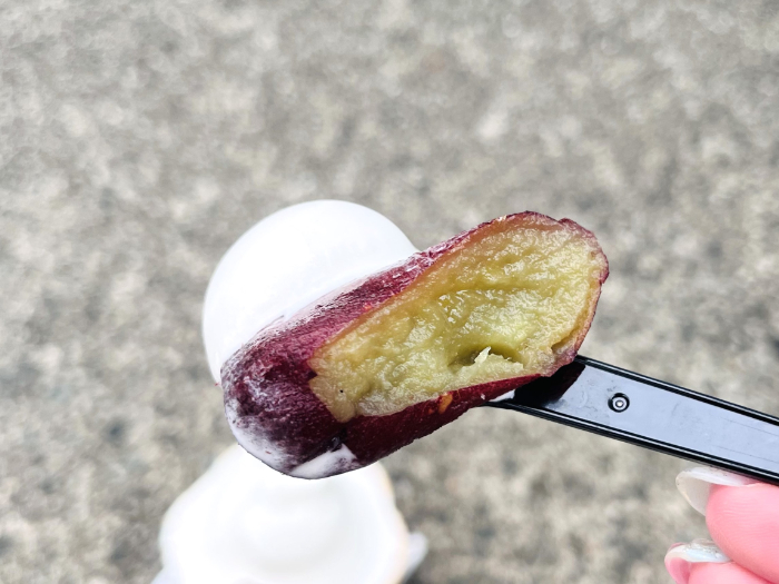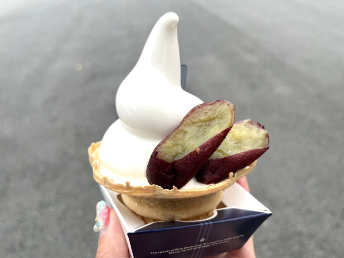 ソフトクリームには、熊本県産紅はるかが練り込まれていて後味が濃い!ふんわりと紅はるかの風味がやってきます。