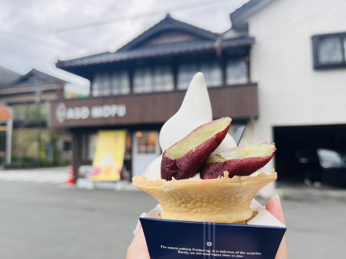 【阿蘇市】必食スイーツ!「ASOMOFU」熊本県産紅はるか×純粋生はちみつのソフトクリームが贅沢すぎる!