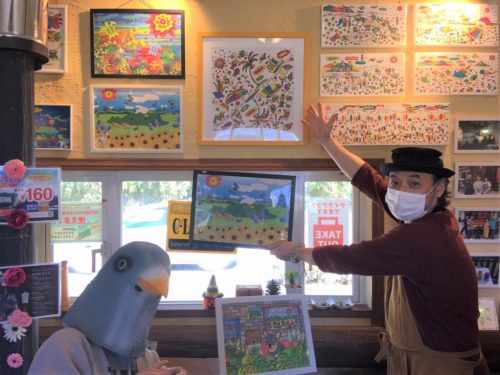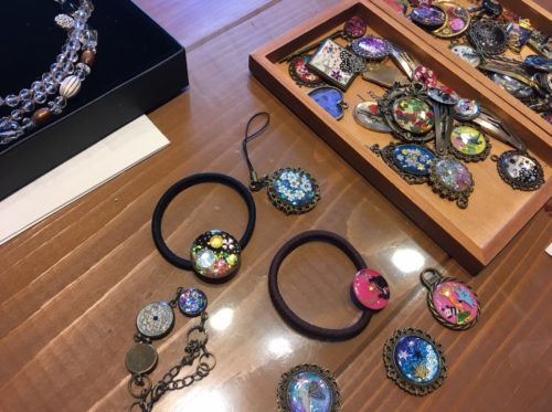 画像左側のオーナーは、震災前は阿蘇ファームランドのアトリエでワークショップをされていたそうで、絵画やステンドグラス、レジンアートなど、たくさんの作品作りをされています。