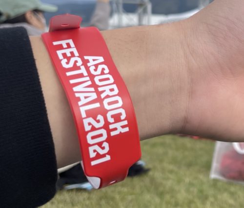 体温もクリアしたら、リストバンドをもらい入場できます。