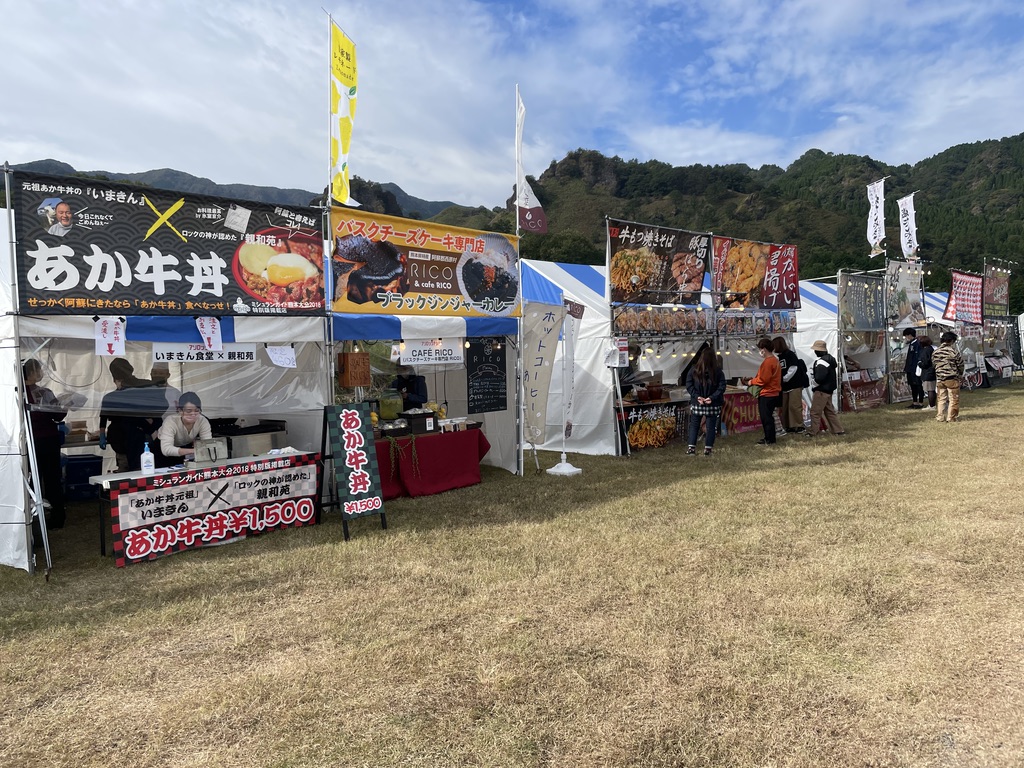 阿蘇ならではのフードバリエーション。普段は行列で1時間待ちの人気店も、並ばずに食べれるという贅沢さ。