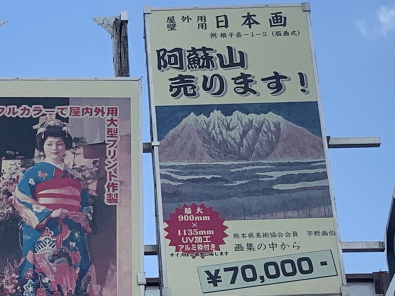 「阿蘇山売ります」の看板は故・平野画伯に敬意を評して