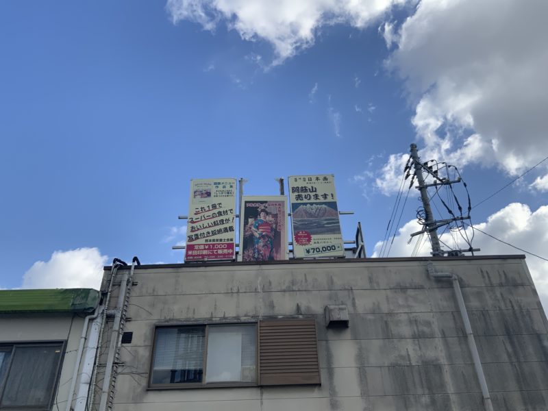もちろん本当に阿蘇山を売ってるわけではなく、日本画のようですが結構古い看板ですし、いまもやってるんでしょうか…。