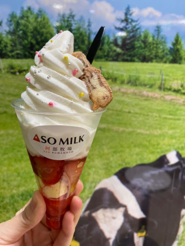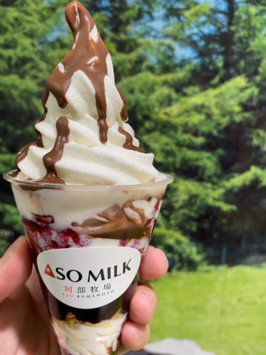 食品部門のミシュランガイドと呼ばれる国際味覚審査機構で3つ星を獲得した、阿蘇を代表する阿部牧場のASO MILKを100%使用したスイーツのお店なんです。
