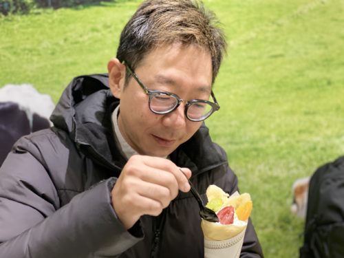 コーンを透明カップに変更して、パフェのような食べ方にしたり、真ん中に白玉をいれて味のアクセントにしたり。