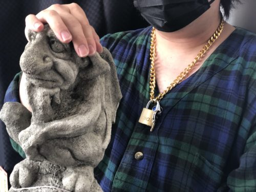 優しくゴブリンのような石像を愛でるしゅん。