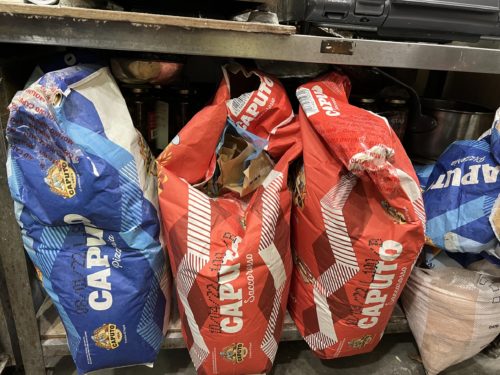 生地に使っている粉はもちろんイタリアのもので青い袋と赤い袋の粉を配合されてました。