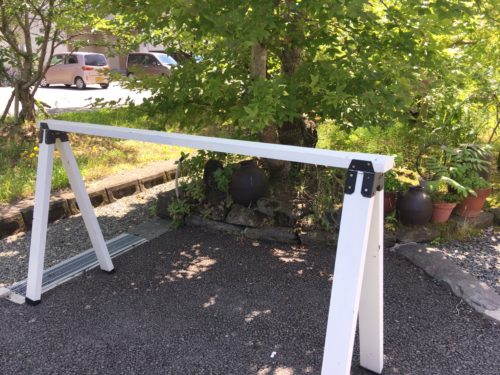 駐車場のところには、謎の白いバーが…。なにかと思えば、ロードバイク用のスタンドだそうで、サイクリング中に立ち寄るお客さんもいるそうです。