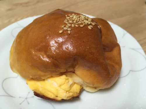 ベーコンエッグのパンを食べてみましたが、ベーコンと卵はパンからはみ出るほど!中にも卵がぎっしりつまっていて、おいしさも満足感も十分でした!