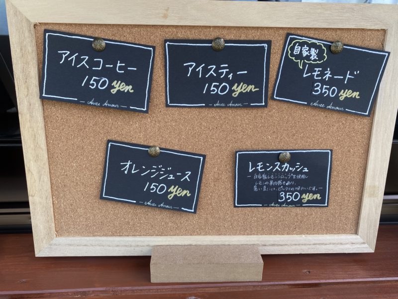 こちらはドリンクメニュー。自家製レモネードって絶対ウマいやつです。