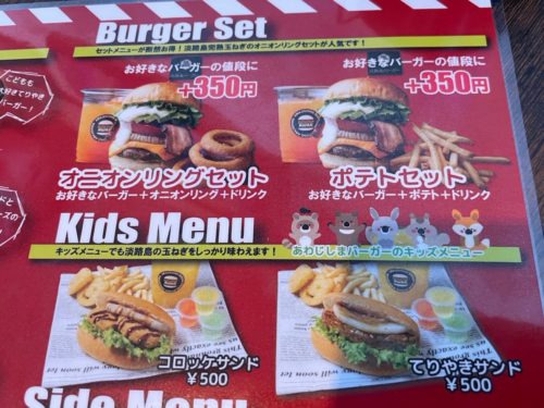 こちらのハンバーガーの中身が壁のポスターにありましたが、なんといってもポイントは淡路島産の玉ねぎと、淡路牛のパティ。どんな味なのか期待が膨らみます。