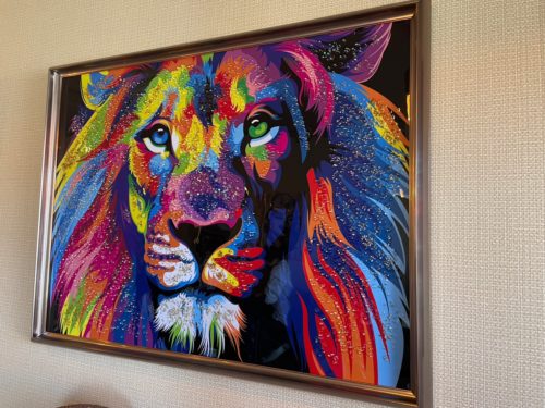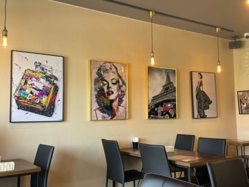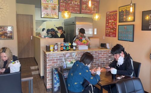 壁には、色彩が美しくインパクトのあるクリスタルアートが飾られていて、ハンバーガーショップとは思えないほど素敵な雰囲気です。