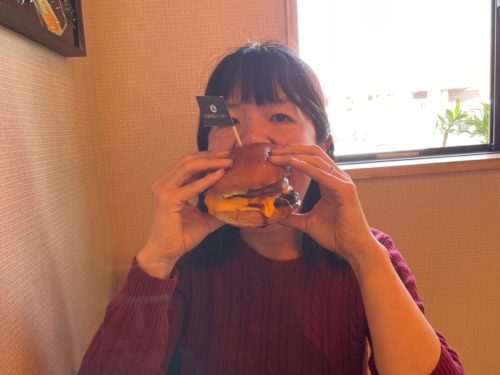 顔の下半分が隠れるほどのBigサイズで、こんな大きなハンバーガーにガブリと噛みつけることが幸せ…!