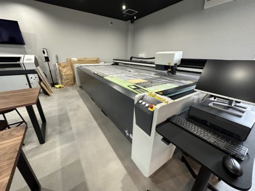 店内はとても広い!奥に大型レーザーカッターが置いてあります。
