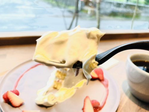 「とろけるショートケーキ」は生クリームとマスカルポーネを合わせたクリームがたっぷりショートケーキにかかっています。
