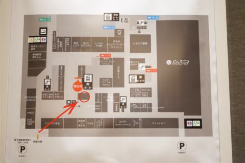 サクラマチクマモト地下1階にあるフードホール内。場所は、観音の泉のある地下通路入り口から見て、矢印の方向へ斜めに向かえばすぐ見つかります。